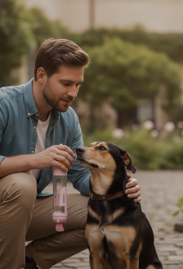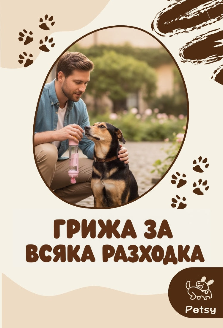 Ежедневните разходки трябва да са лесни, а не стресиращи. Носенето на отделни купички, лакомства и торбички за отпадъци създава излишно неудобство и бъркотия. Надеждната бутилка за вода за домашни любимци държи всичко организирано, без разливане и готово, когато кучето ти има нужда от него, така че всяка разходка да е по-спокойна и по-контролирана.