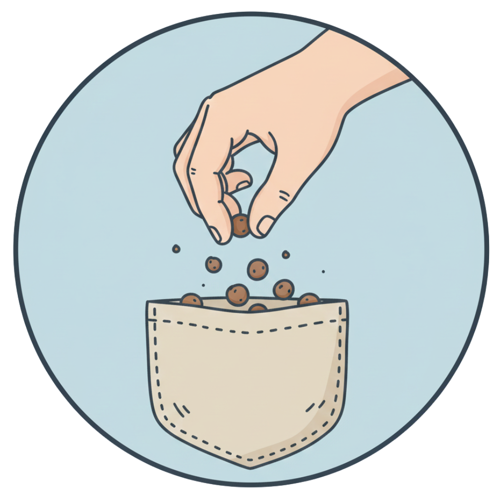 Лакомствата, носени свободно в джобове или чанти, се смачкват, разсипват или изобщо се забравят още преди разходката да е свършила.